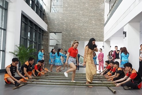 中越學(xué)生共跳竹竿舞