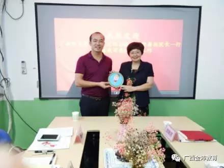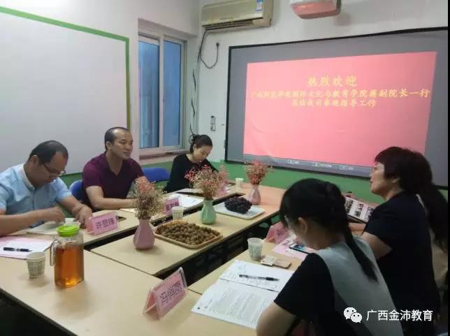 廣西金沛教育國(guó)際部團(tuán)隊(duì)與廣西師范學(xué)院國(guó)際文化與教育學(xué)院蔣招鳳副院長(zhǎng)(右三)一行合影留念