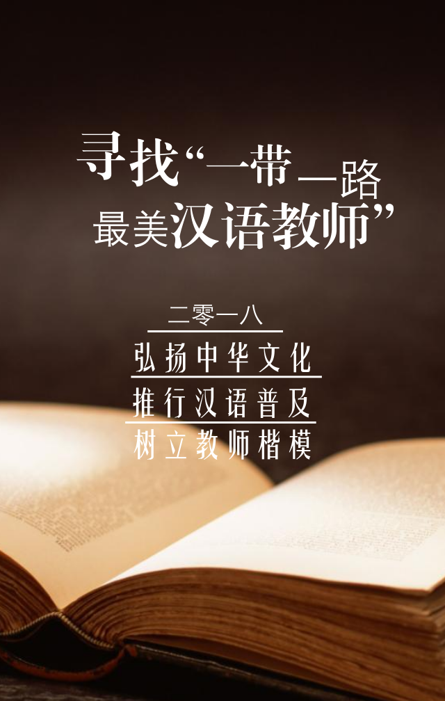 為進(jìn)一步弘揚(yáng)中國(guó)漢語(yǔ)文字推廣普及文化教育理論傳播,推進(jìn)漢語(yǔ)教學(xué)科學(xué)和諧發(fā)展,營(yíng)造師生默契配合的濃厚學(xué)術(shù)氛圍,促進(jìn)學(xué)風(fēng)建設(shè),同時(shí)也為了給教師提供一個(gè)展示自我的平臺(tái),現(xiàn)決定在一帶一路沿線(xiàn)國(guó)家開(kāi)展2018年尋找“一帶一路最美漢語(yǔ)教師”評(píng)選活動(dòng)。