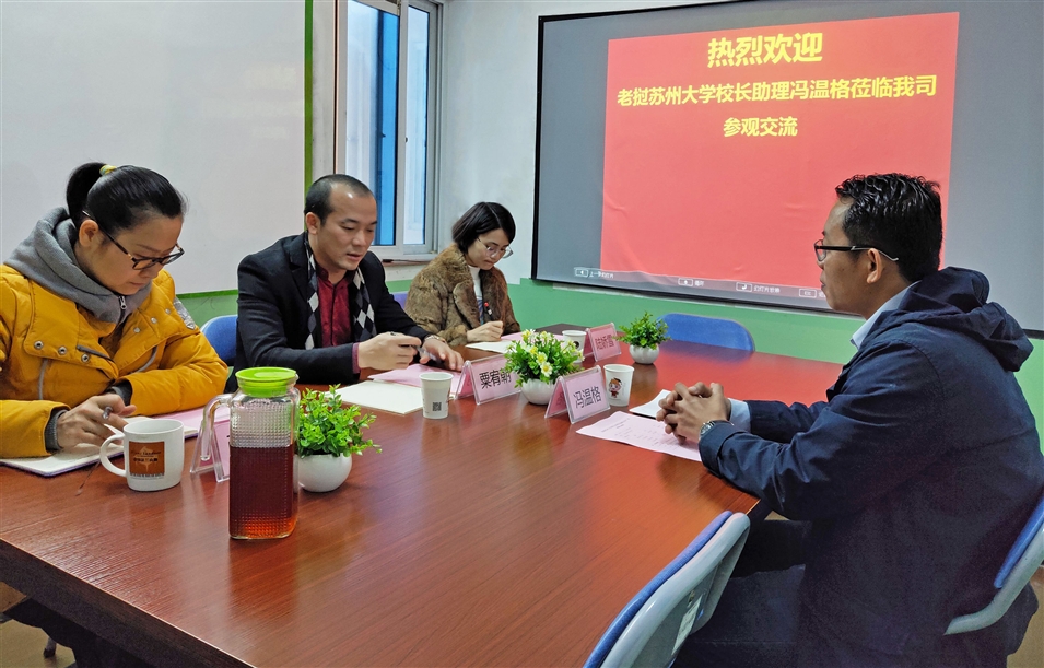 2019年1月7日,老撾蘇州大學校長助理馮溫格拜訪廣西金沛教育,與廣西金沛教育執(zhí)行董事粟宥朝、校長張金雪進行座談。