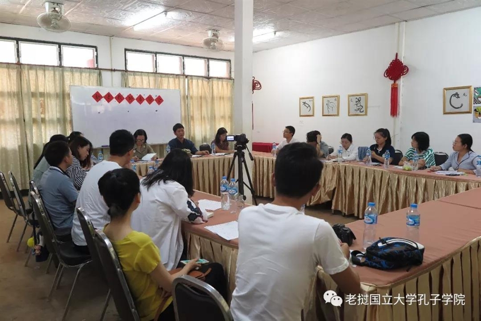 為了交流在老撾的教學和生活經驗,樹立正確的人生觀和價值觀,12月21號上午,老撾國立大學孔子學院在N8教室召開漢語教師座談會,邀請原志愿者教師楊喜回校座談交流??鬃訉W院全體公派漢語教師和漢語教師志愿者近20人參加了座談會。