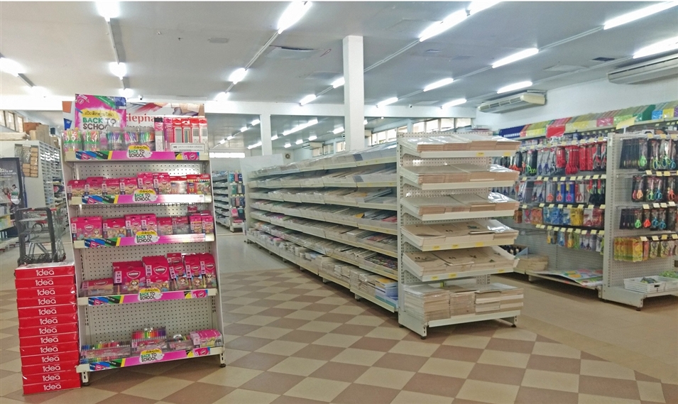 相對于食堂區(qū)小商店和宿舍區(qū)小商店,這里更多的是售賣文具和一些文體活動(dòng)用品。