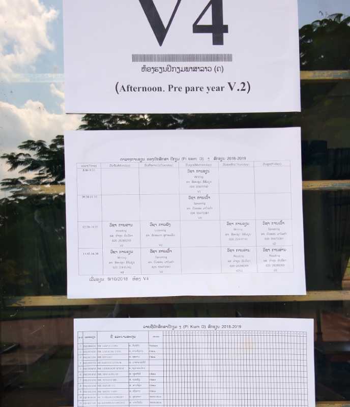這是V4班的課程表,都是老撾文,所以大家也不用糾結(jié)了,就當(dāng)走個(gè)形式,還是聽(tīng)小編講解吧~