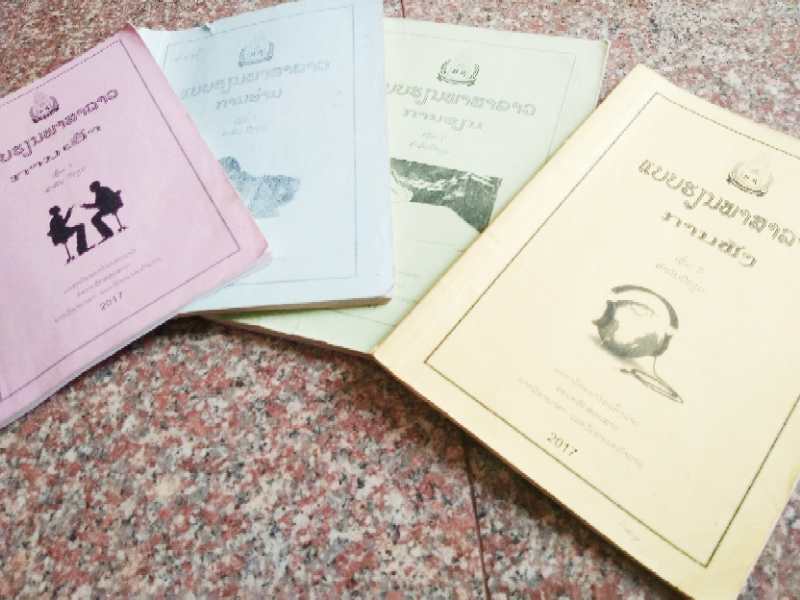 老撾語(yǔ)預(yù)科課程分為聽(tīng)、說(shuō)、讀、寫(xiě)四科,分別由四位老師授課,每科課本分上下冊(cè),各科的上課時(shí)間均為一個(gè)半小時(shí),對(duì),是連上一個(gè)半小時(shí),中間沒(méi)有休息時(shí)間,跟國(guó)內(nèi)每節(jié)課45分鐘中間穿插10分鐘休息時(shí)間的模式還是有點(diǎn)差別的,不過(guò)授課時(shí)間跟國(guó)內(nèi)是一樣的,周一至周五。