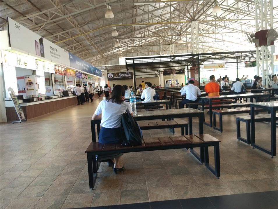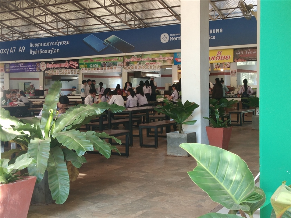 老撾國立大學(xué)的食堂帶有很濃郁的東南亞風(fēng)格,與中國高校的密封式建筑不同,它的四面圍墻基本都以玻璃窗和柱子代替,因此通風(fēng)和采光都很不錯,食堂里不會充斥著各種食物交雜的悶熱氣息。