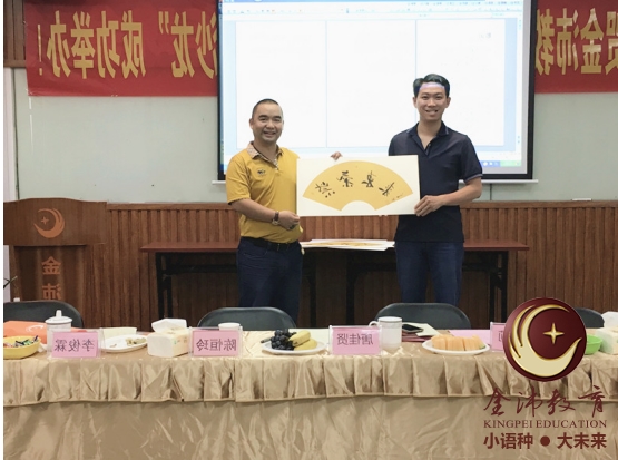 中華文化博大精深,在書法上的文化內(nèi)涵更是獨(dú)樹一幟,為加強(qiáng)中越兩國的文化交流,提高兩國間傳統(tǒng)文化的相互了解,金沛教育鳳嶺校區(qū)執(zhí)行董事、著名書法家岑亭儒給大家詳細(xì)講解了《中越文化之中國書法文化篇》,為中華傳統(tǒng)文化的發(fā)揚(yáng)也出了一份力,并代表金沛教育向越南代表贈(zèng)送了寓意為中越友誼的書法作品。