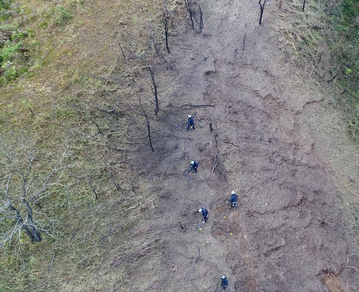 掃雷官兵在中越邊境廣西段某雷場搜排地雷